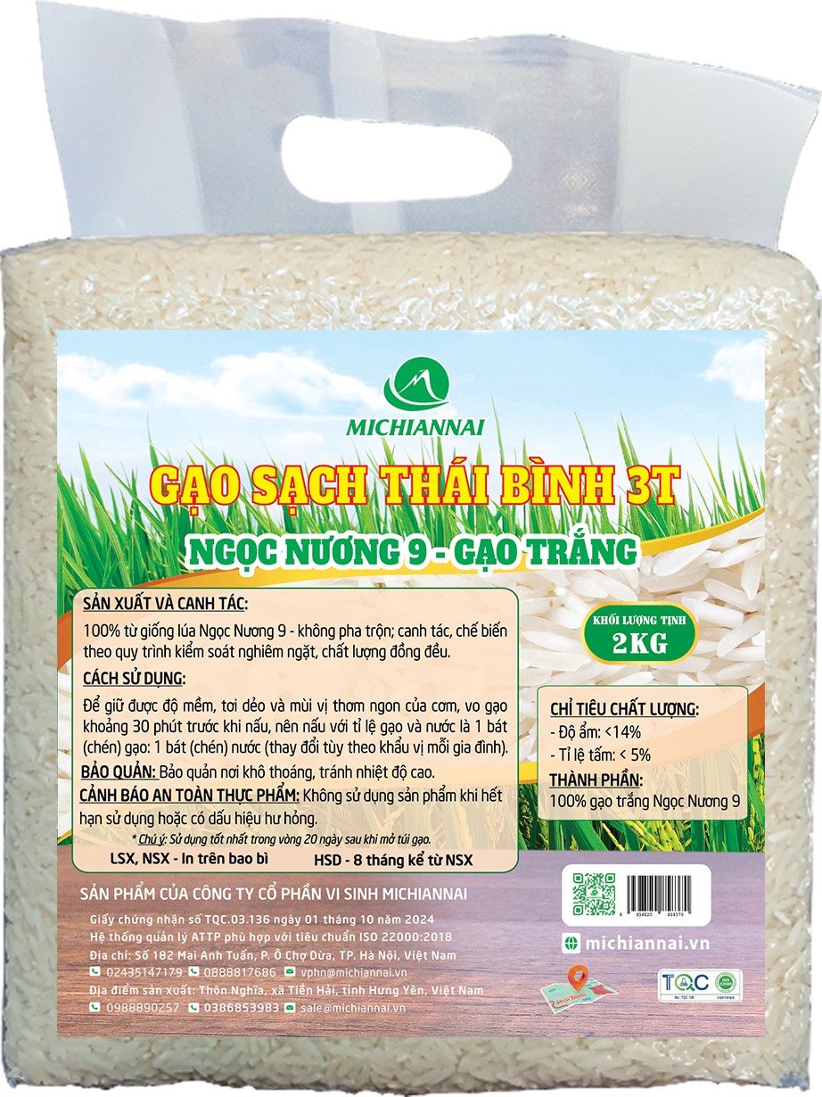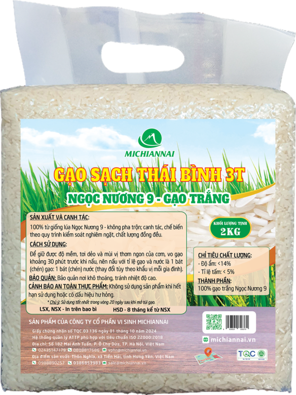Gạo sạch Thái Bình 3T (Ngọc Nương 9 – Gạo trắng)